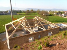 - Charpente bois traditionnelle : Villas, toits Dauphinois, garages, hangars, terrasses, toitures toutes formes, taille à façon.